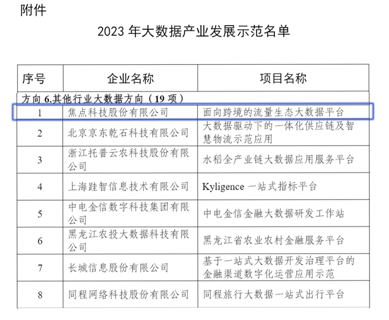 焦點(diǎn)科技入選工信部2023年大數(shù)據(jù)產(chǎn)業(yè)發(fā)展示范名單