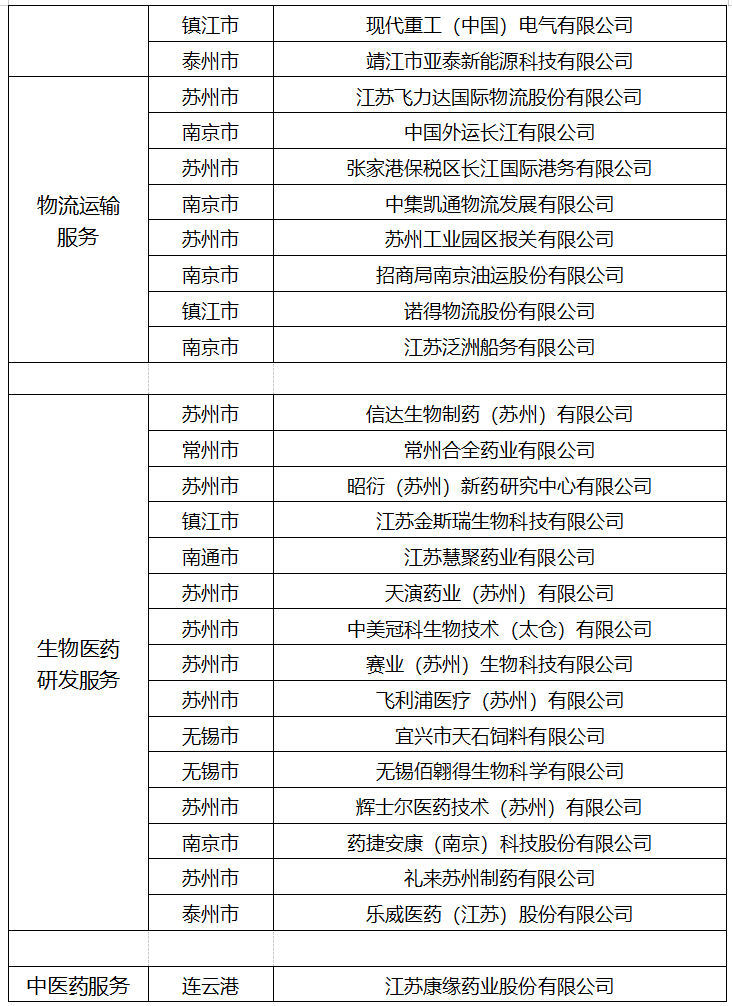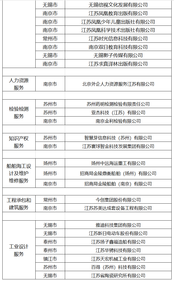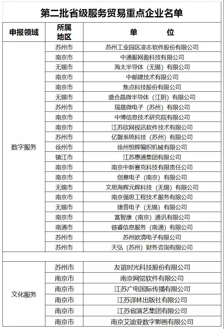 省商務(wù)廳發(fā)布2021年江蘇省服務(wù)貿(mào)易基地和重點(diǎn)企業(yè)名單